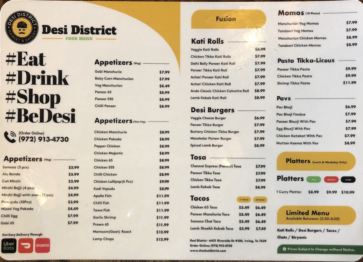 The Malai Paneer Kebab promises a succulent, creamy bite that's a must-try for paneer lovers. Reviewers consistently praise Desi District's Mutton Juicy Mandi for its rich, tender meat and authentic spices that transport you straight to Indian culinary roots. The Dosa, while slightly thick, remains satisfying, complemented by standout snacks like Medu Vada and Puffs. Desserts such as Rasmalai Cake and beverages like Filter Coffee round out an experience that expertly balances bold spices with fresh, well-executed dishes. A warm, inviting atmosphere enhances the overall appeal, making Desi District a delightful destination for food enthusiasts craving true Indian flavors with a modern twist.